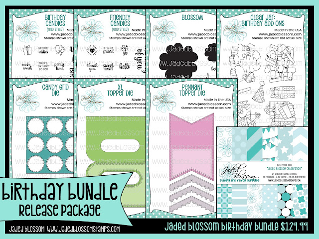 #thefrolickingfairy #jadedblossom #birthday #birthdaycelebration #blackfriday #blackfridaysale #shopsmall #FriendlyCandies #CandyGridDie #BirthdayCandies #PennantTopperDie #XLTopperDie #patternedpaper #partyfavors #clearjarbirthdayaddons #blossom #vellum #cardmaker #instacrafty #cardmaking #cardmakersofinstagram